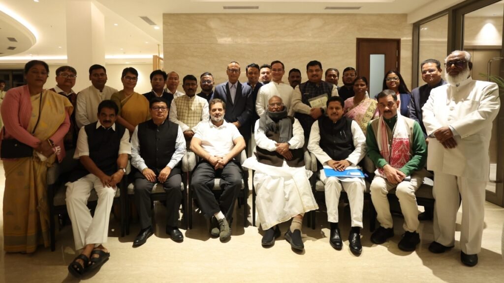 कांग्रेस अध्यक्ष मल्लिकार्जुन खरगे के नेतृत्व में असम प्रदेश कांग्रेस कमिटी के नेताओं की बैठक