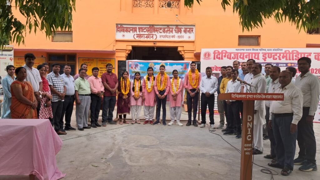 दिग्विजयनाथ इंटरमीडिएट कॉलेज,चौक बाजार महराजगंज में परिषदीय परीक्षा वर्ष 2026 में उत्कृष्ट प्रदर्शन करने वाले छात्र-छात्राओं को सम्मानित करने के लिए विशेष कार्यक्रम आयोजित किया गया। इस दौरान हाईस्कूल और इंटरमीडिएट बोर्ड परीक्षा में बेहतर परिणाम हासिल करने वाले मेधावी विद्यार्थियों को सम्मानित किया गया तथा शिक्षकों ने उन्हें मिठाई खिलाकर उज्ज्वल भविष्य की शुभकामनाएं दीं।